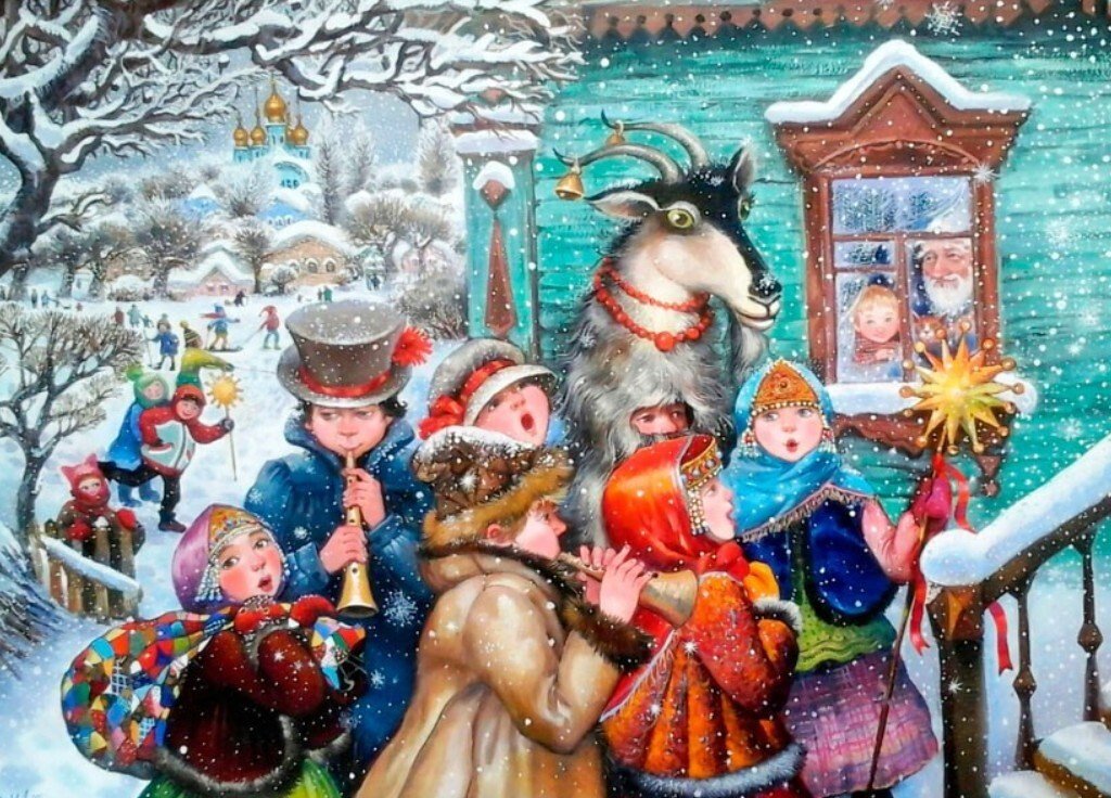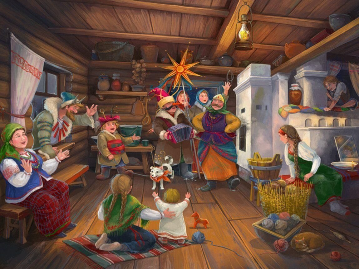 ![Константин Трутовский «колядки в Малороссии», 1864]()