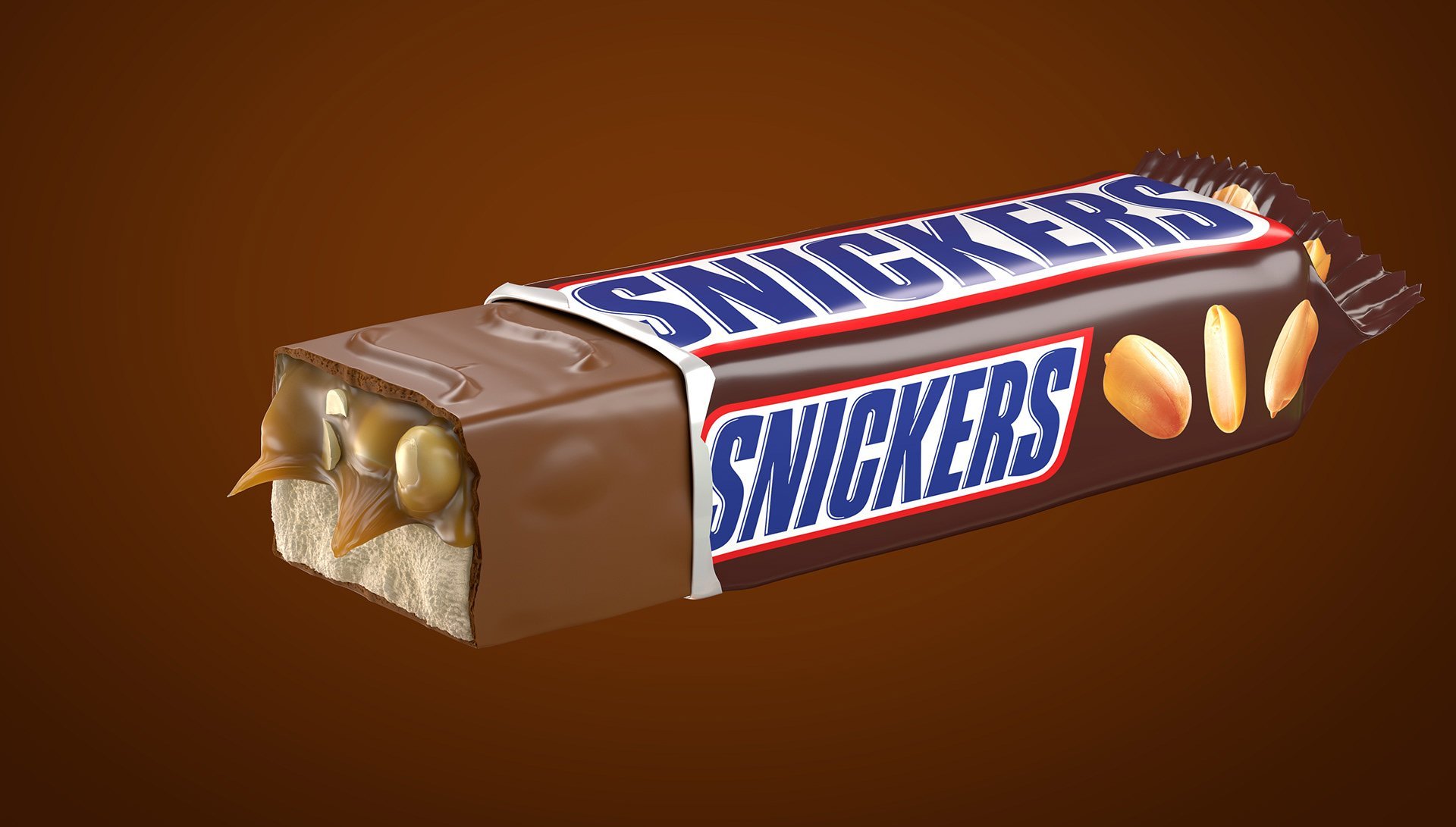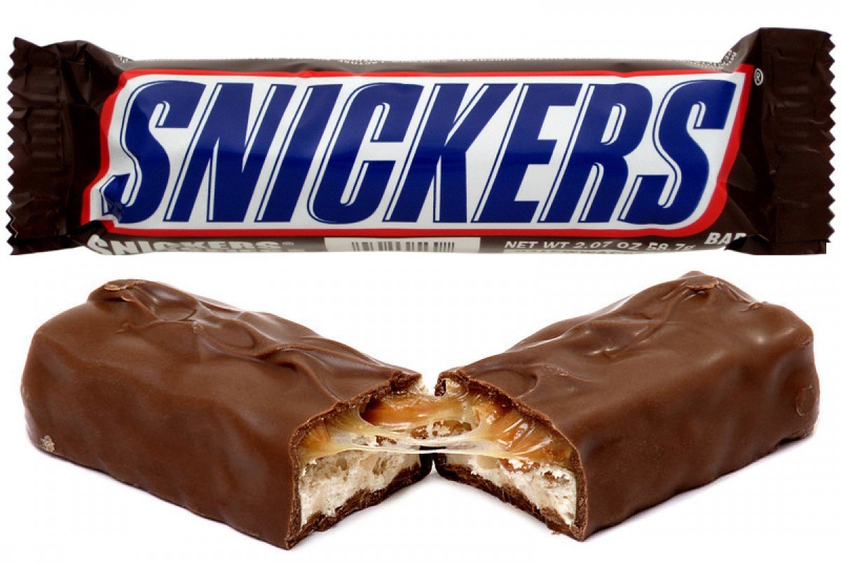 ![Шоколадный батончик snickers]()