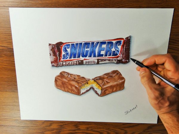 ![Сникерс карандашом]()