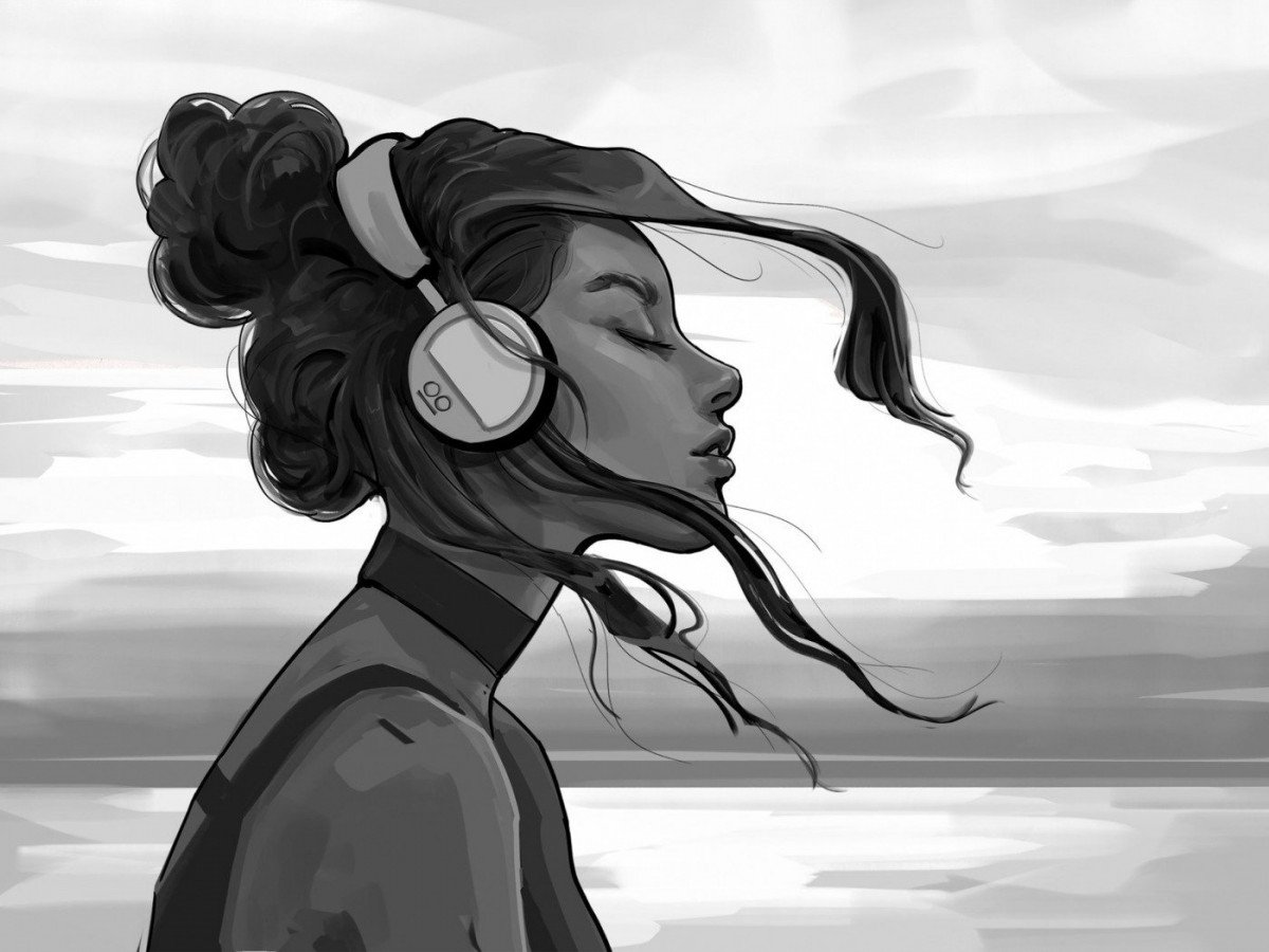 ![Девушка в наушниках арт]()