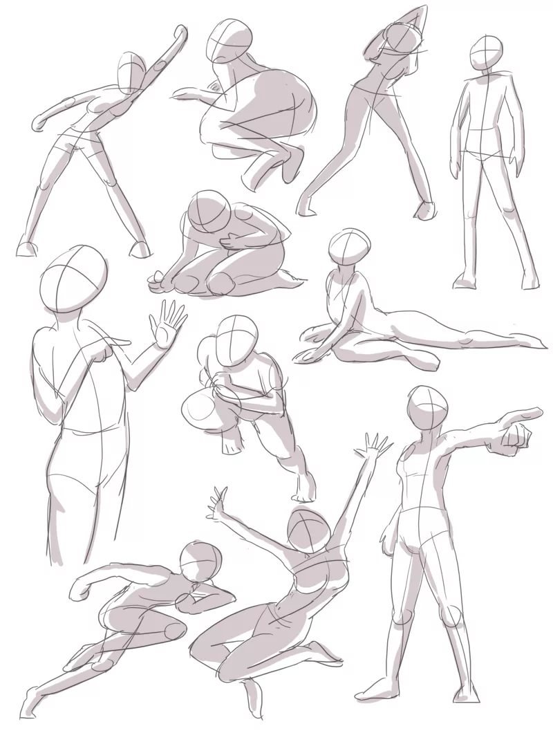 ![Различные позы для рисования]()