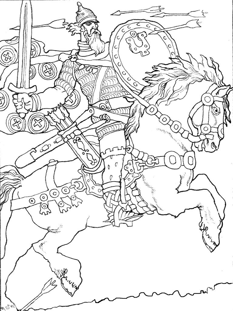Богатырь раскраска для детей