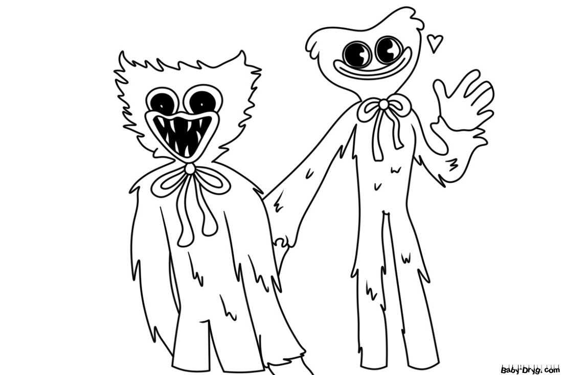![Хаги ваги и Кисси Мисси раскраска]()