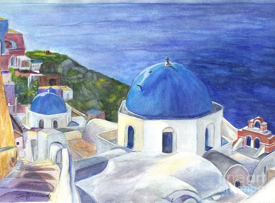 ![Греческий художник Пантелис Зографос картины море лодки Санторини]()