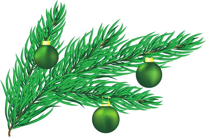 ![Еловая веточка с игрушками]()