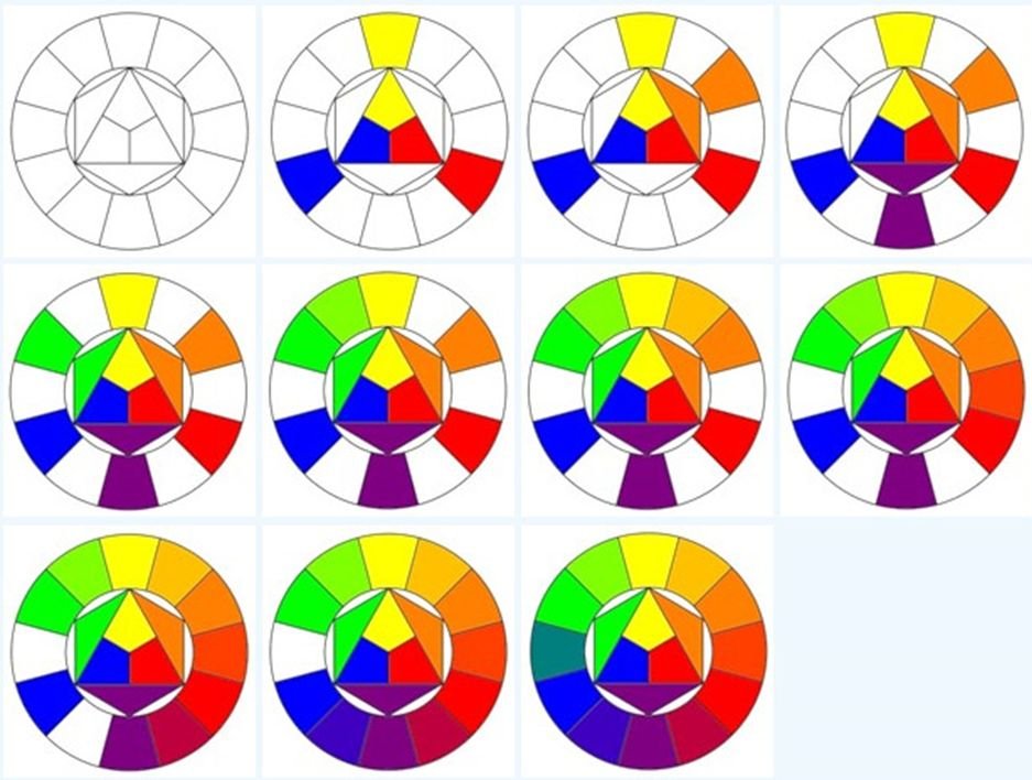![Иттена цветовой круг красный,желтый,синий]()