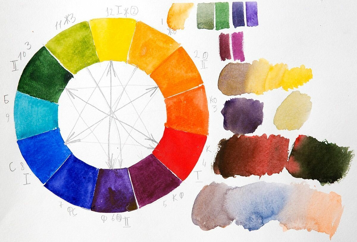 ![Цветовой круг Иттена акварелью]()