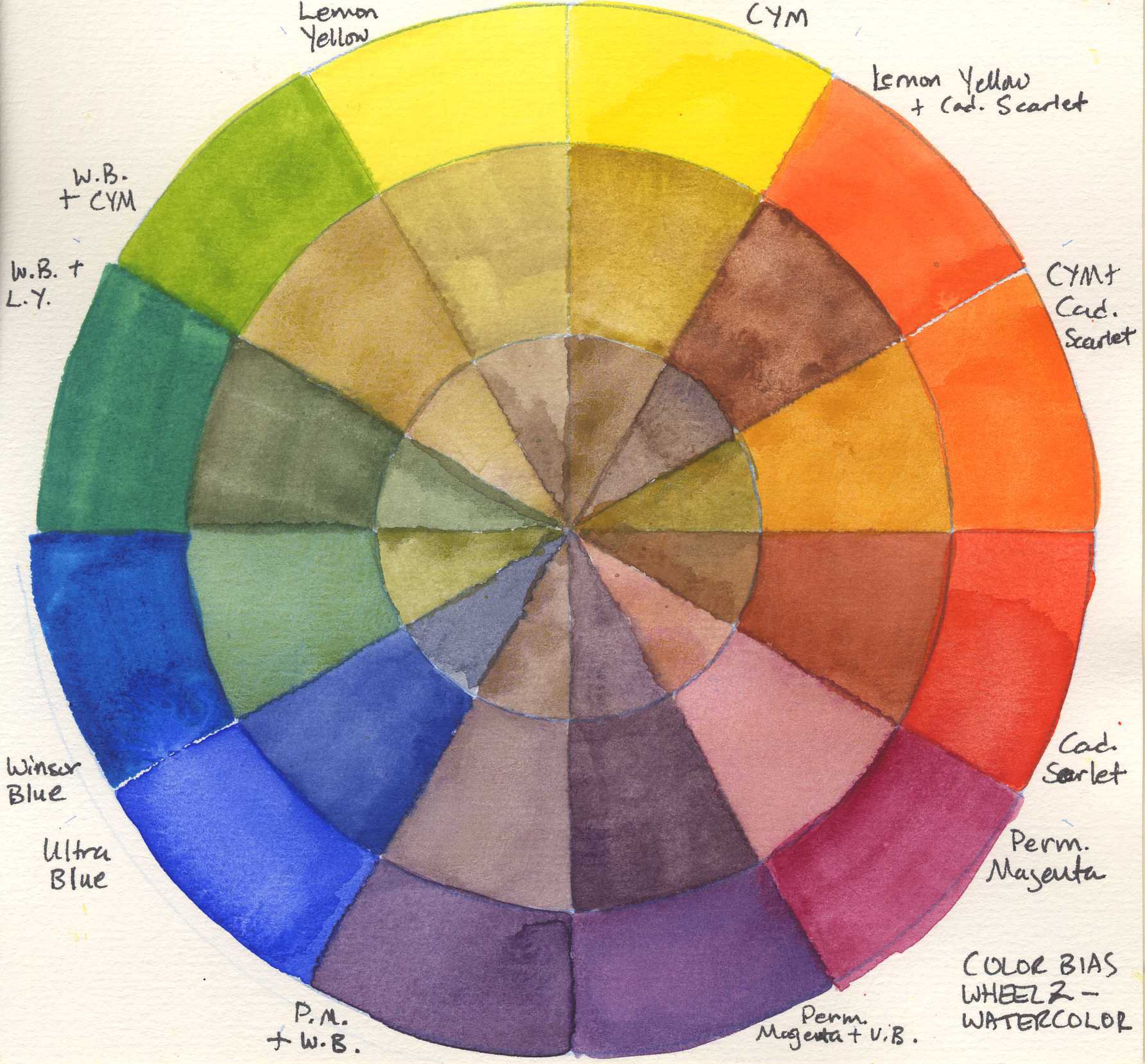 ![Цветовой круг акварелью цветоведение]()