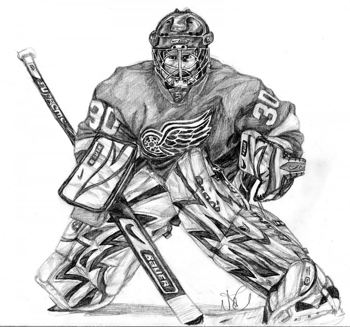 ![Хоккейный вратарь скетч]()
