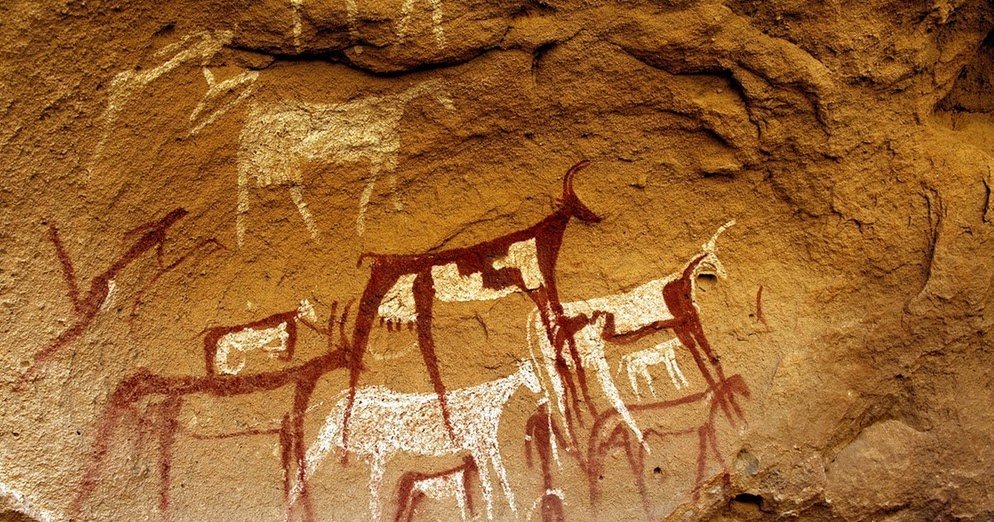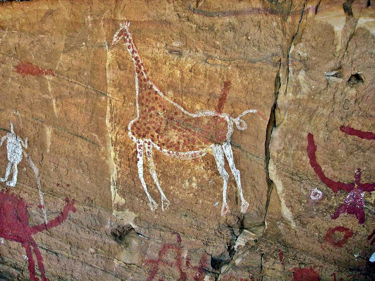 ![Наскальная живопись в горах Тадрарт-Акакус]()