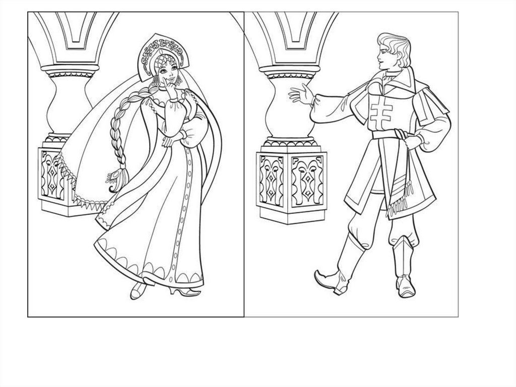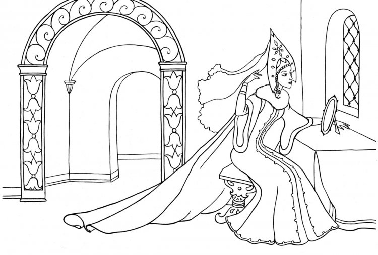 Сказка о мёртвой царевне и семи богатырях раскраска