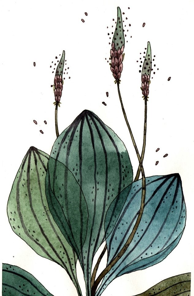 Подорожник акварель