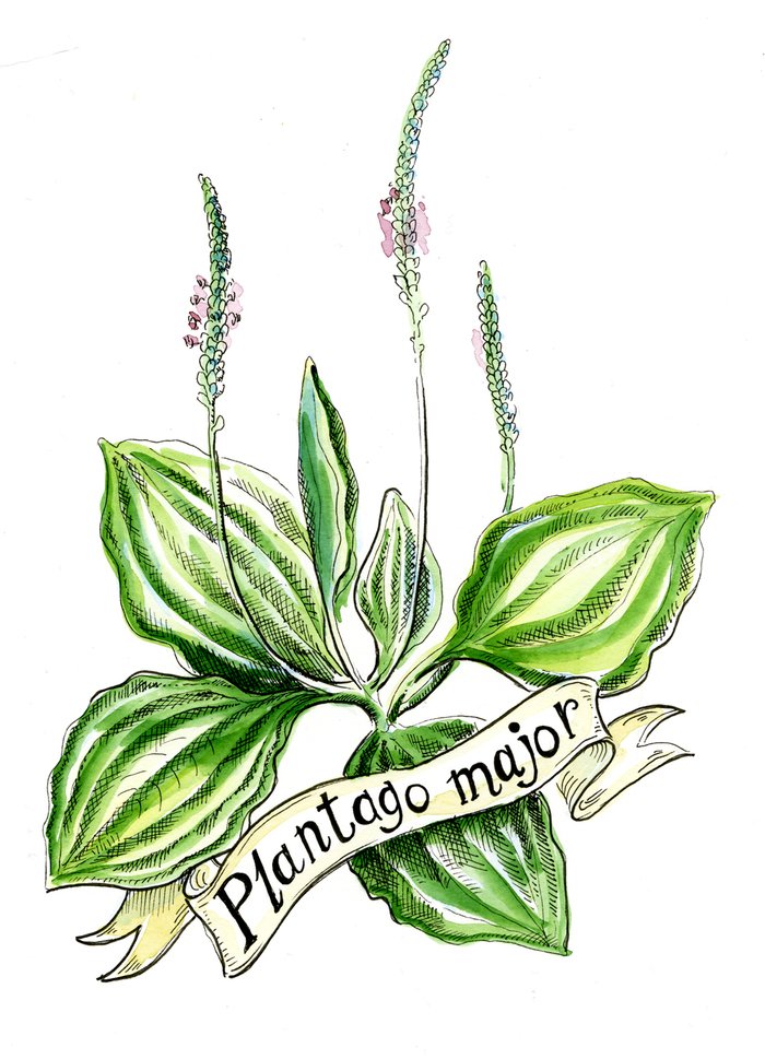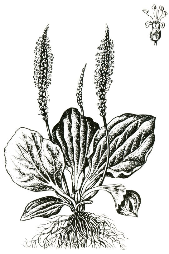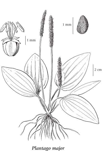 ![Plantago Major Ботанический рисунок]()