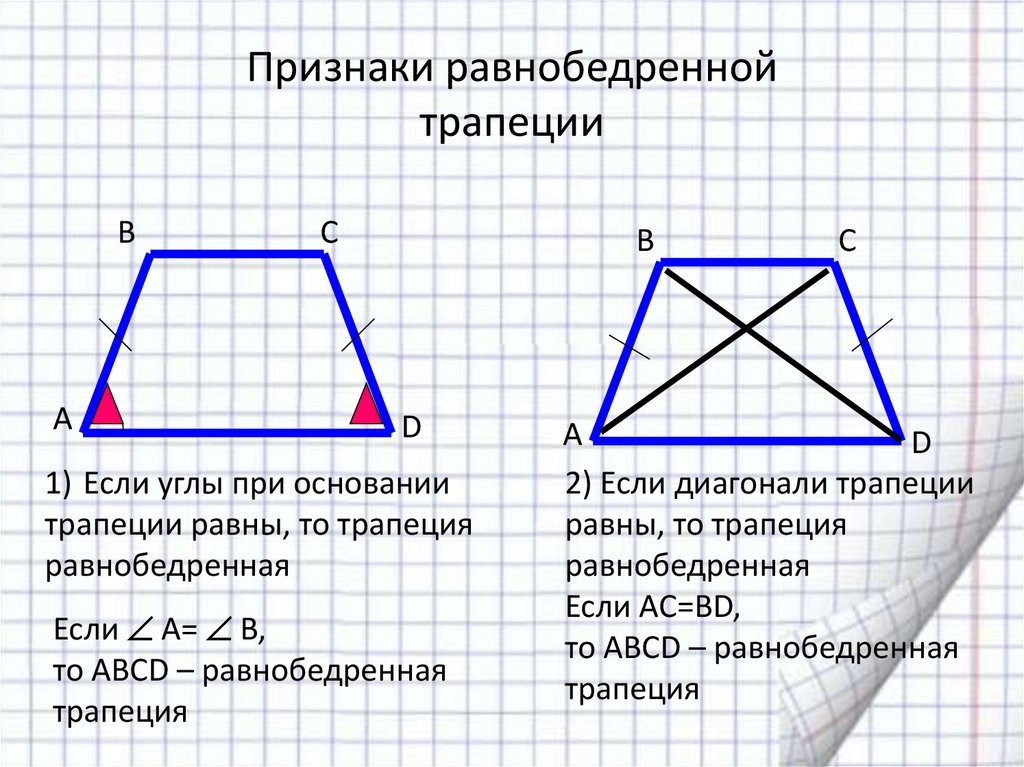 ![Свойства равнобедренной трапеции 9 класс геометрия]()