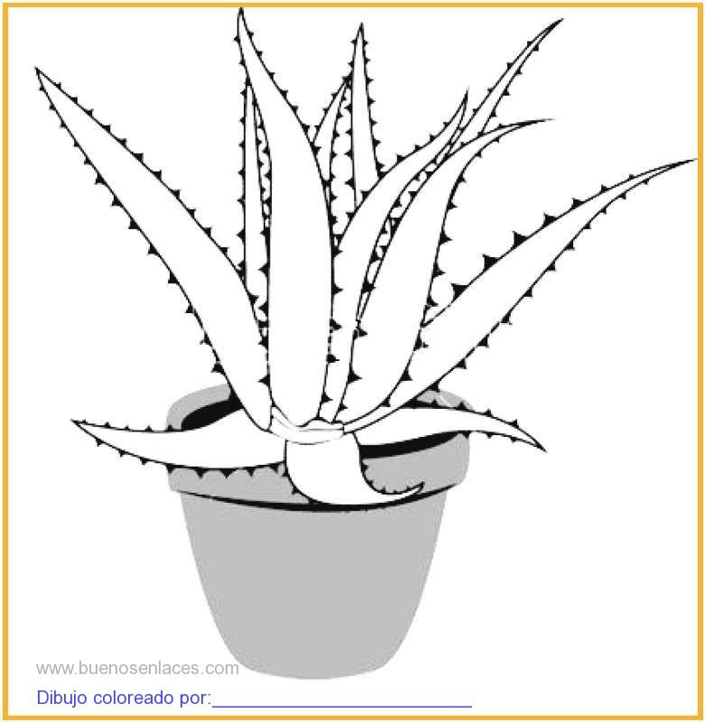![Алоэ растение раскраска]()