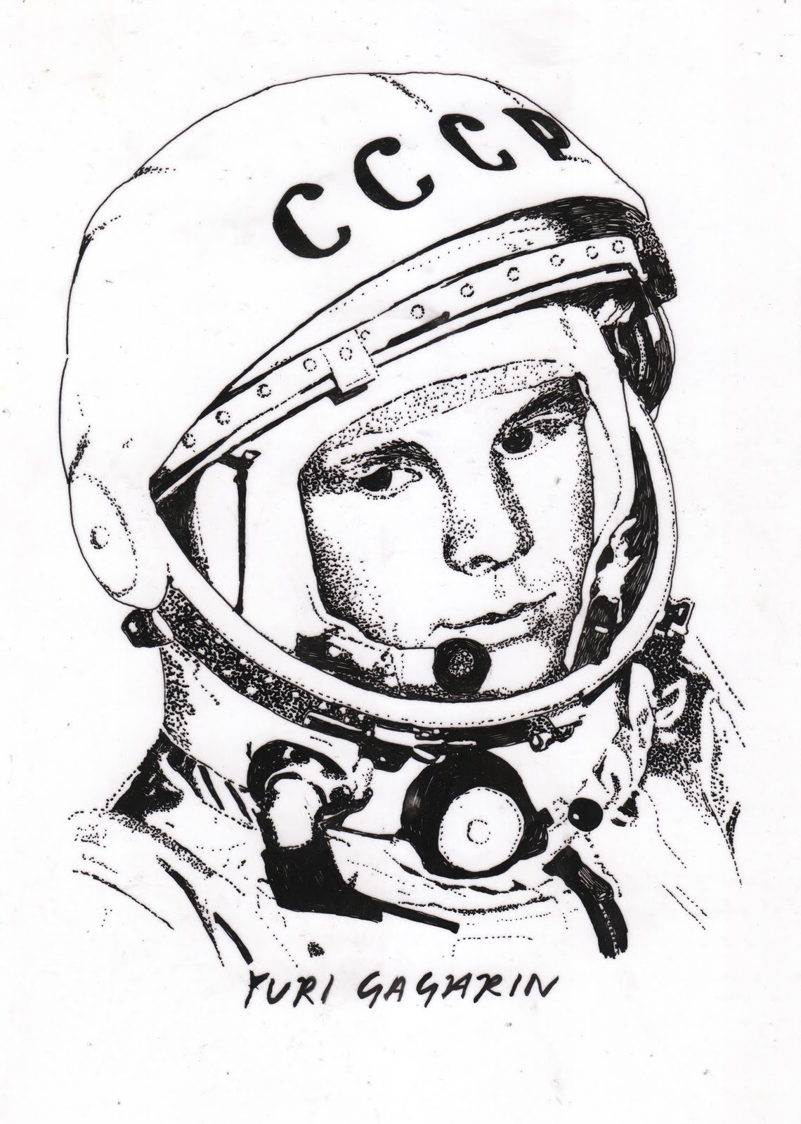 ![Юрий Гагарин портрет рисунок]()