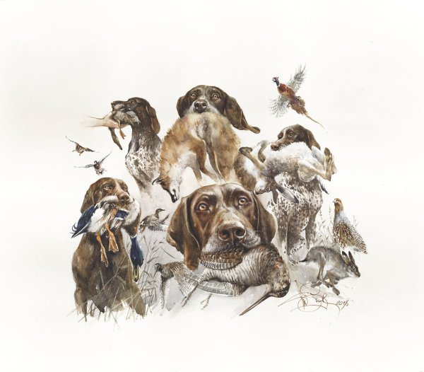 Курцхаар в живописи охота
