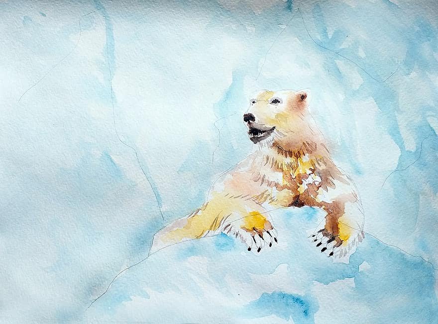 ![Белый медведь акварель]()
