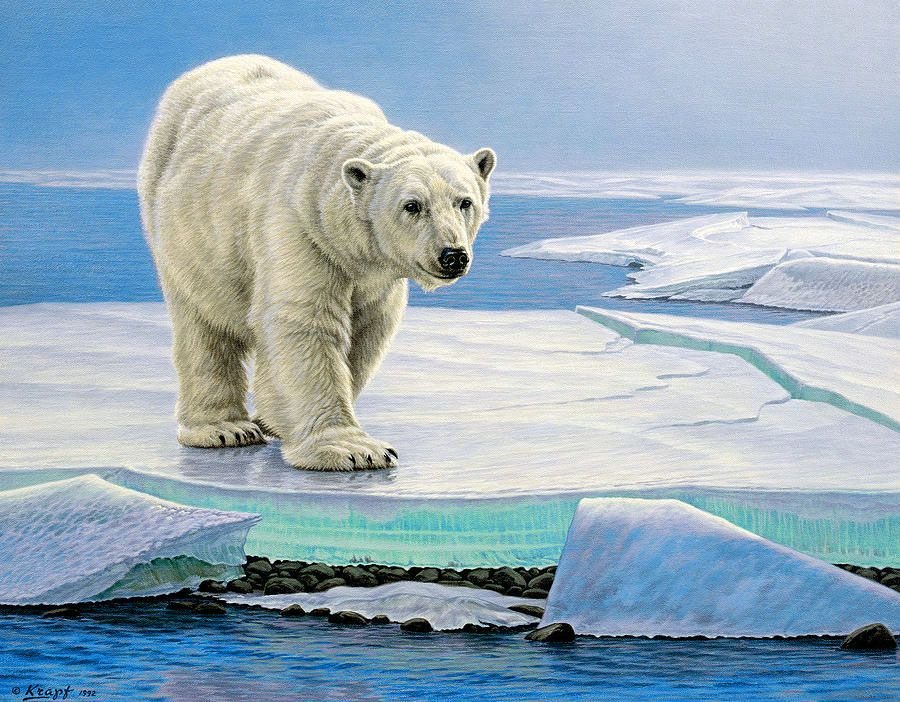 ![Белый медведь живопись]()