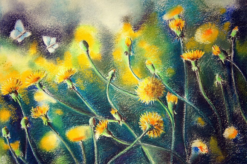 ![Цветы пастелью сухой]()