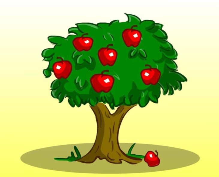 ![Мультяшное дерево с яблоками]()