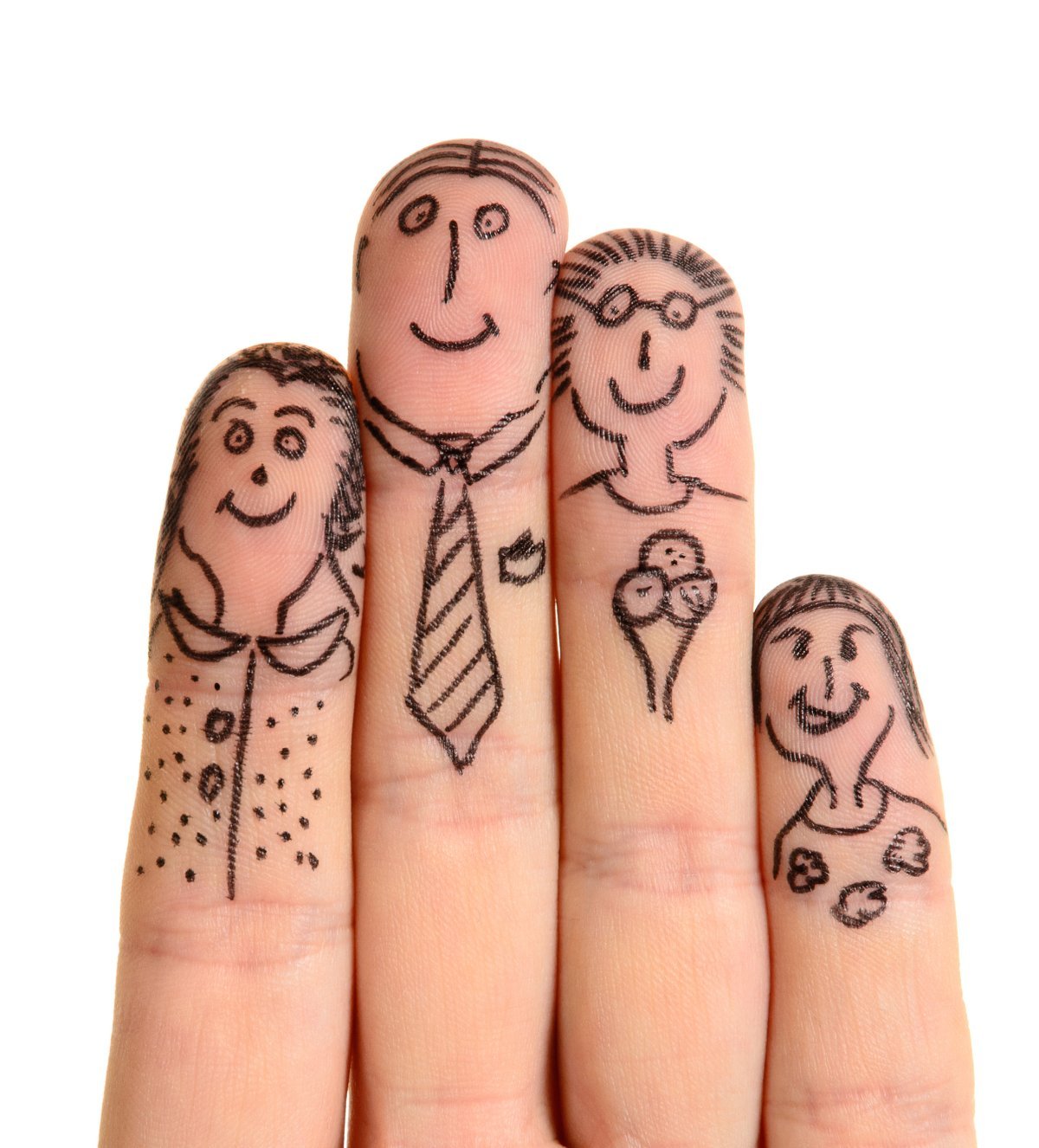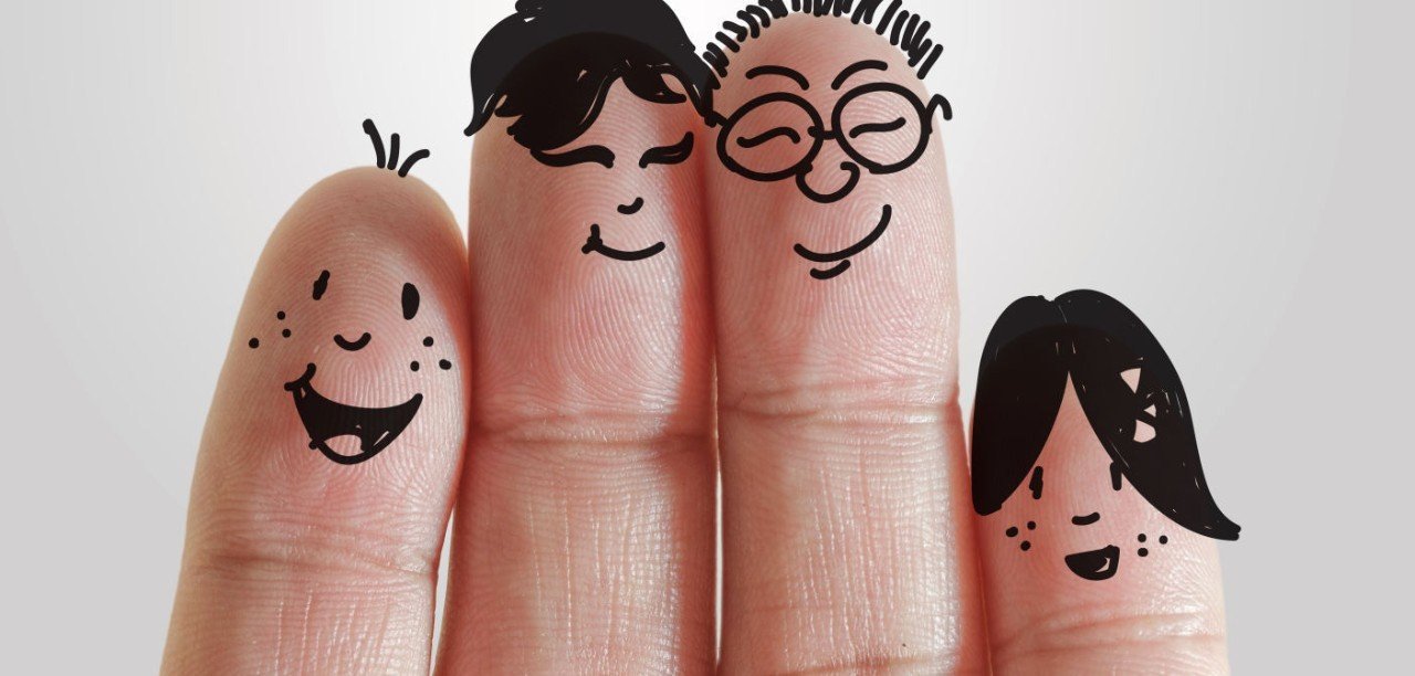 Семья нарисована на пальцах
