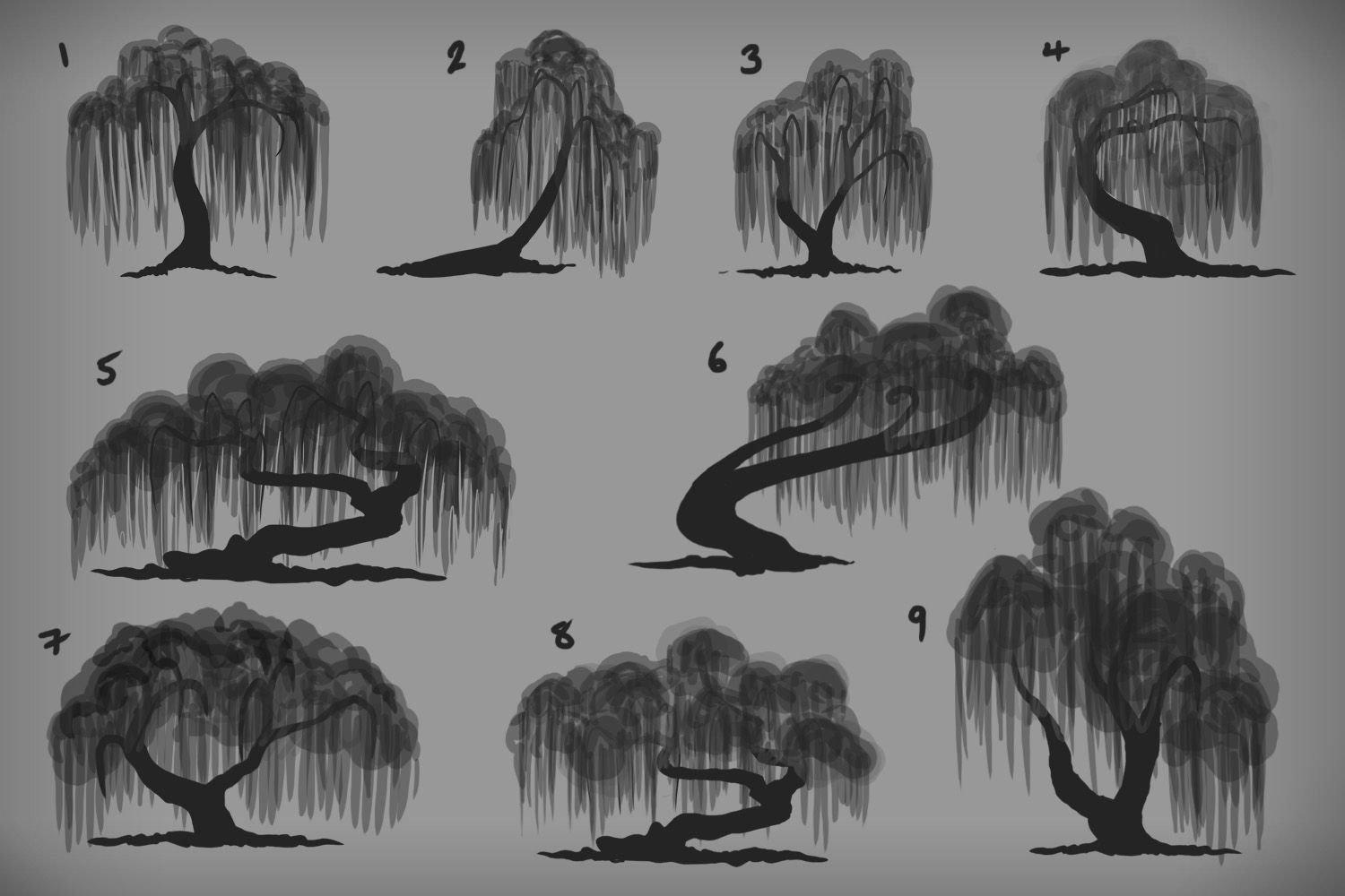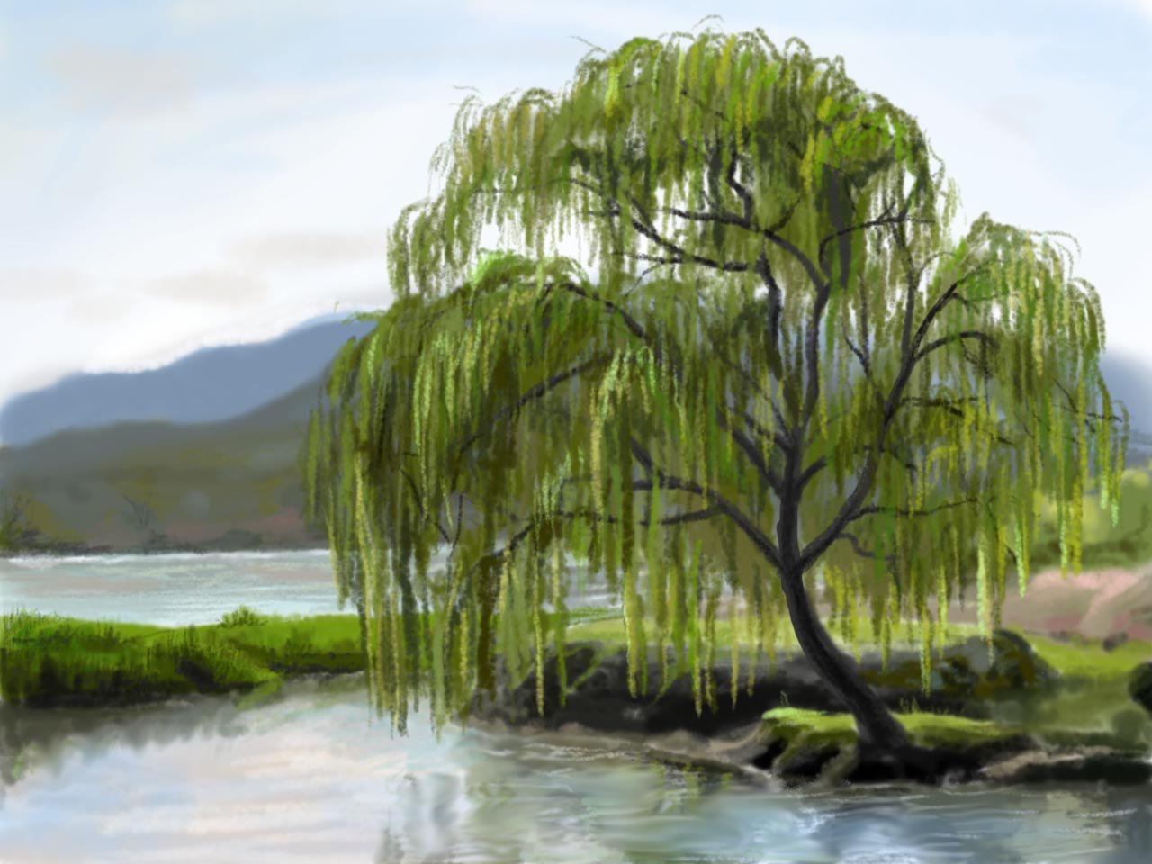 ![Нарисован дерево иву]()