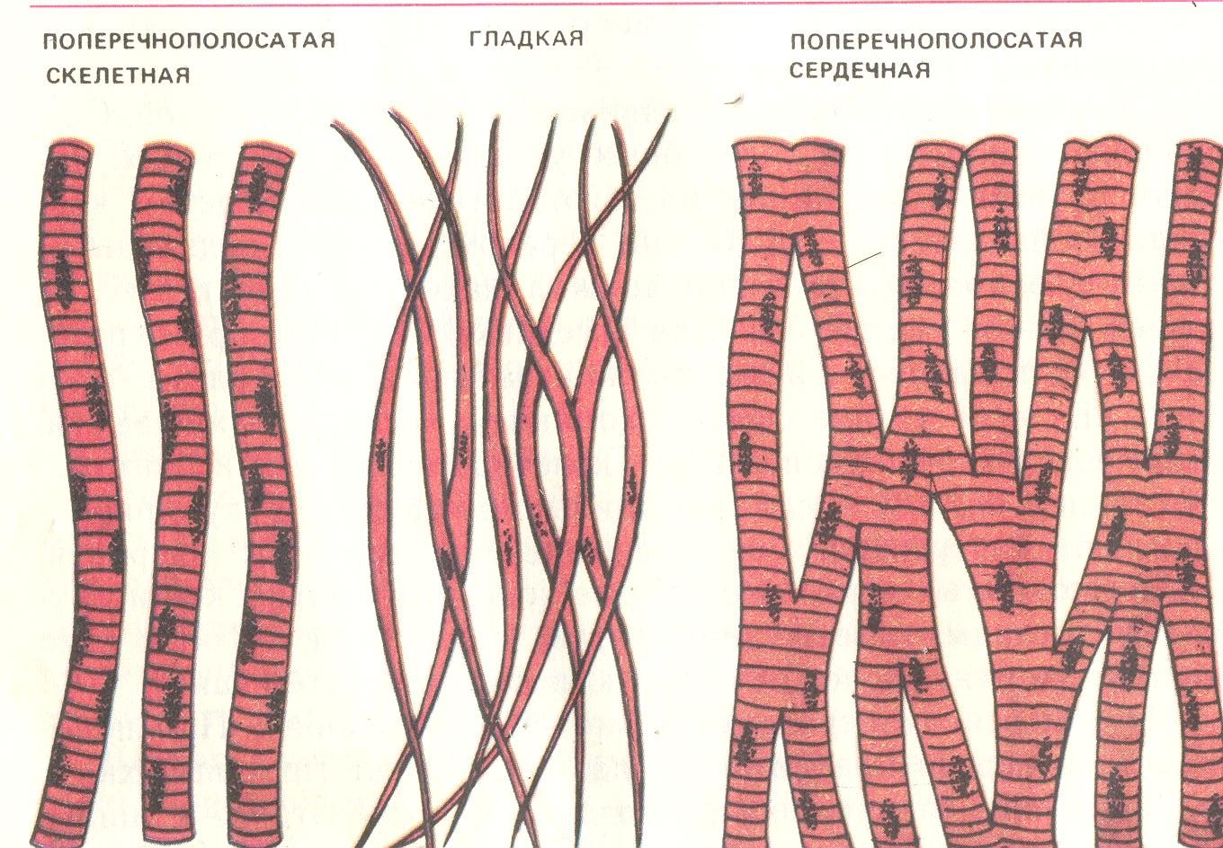 ![Поперечнополосатая и гладкая мышечная ткань]()