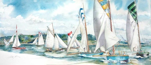 ![Парусная регата акварель]()