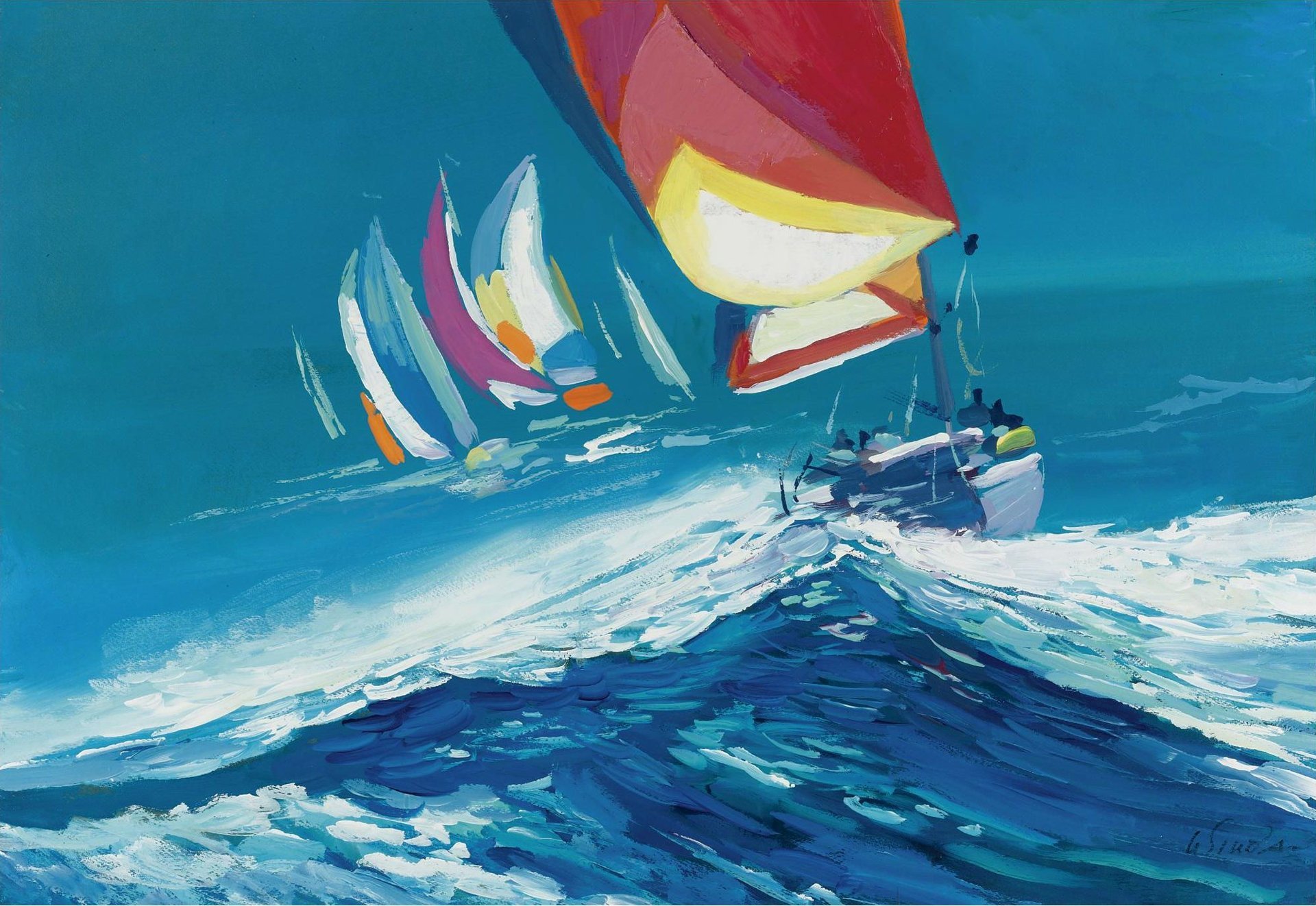 ![Яхты регата живопись]()