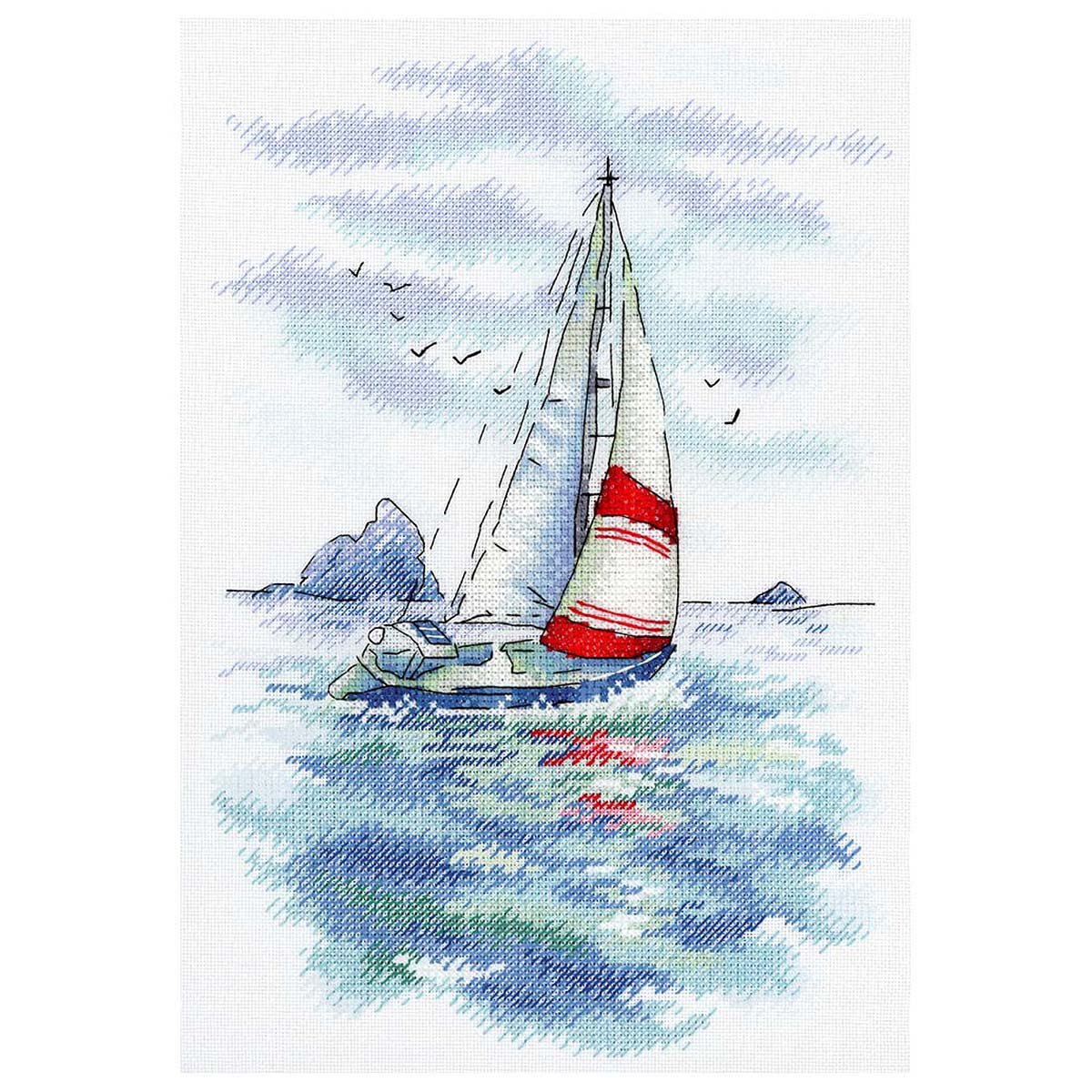 ![Морской пейзаж с корабликом]()