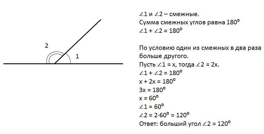![Один из смежных углов в 2 раза больше другого]()