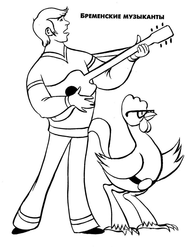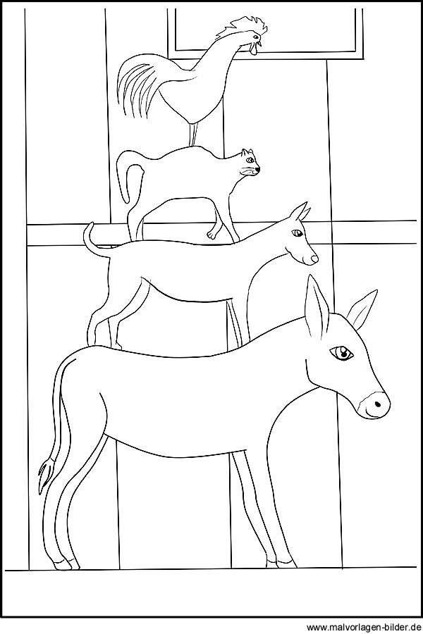 ![Раскраски к сказке Бременские музыканты братьев Гримм]()