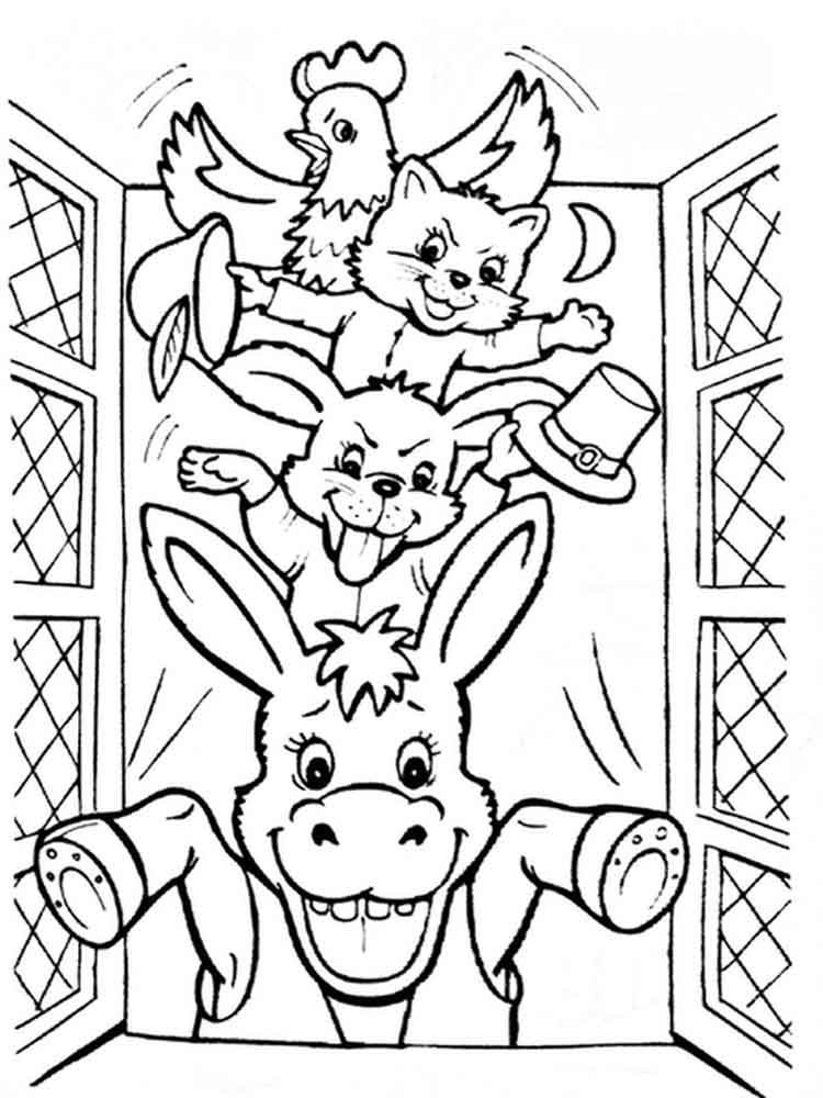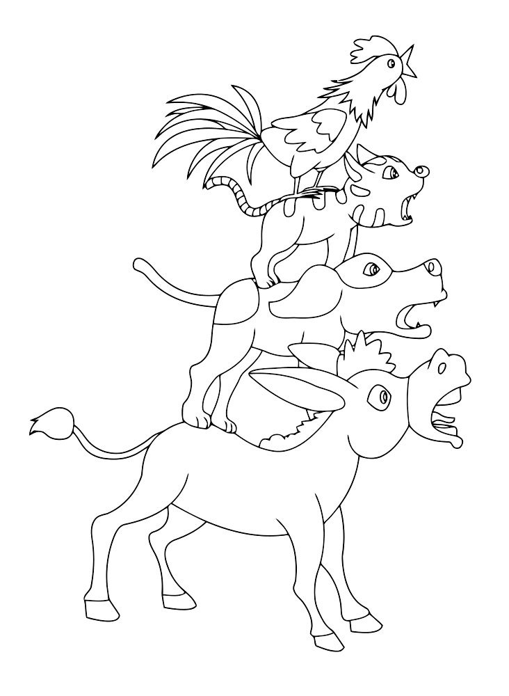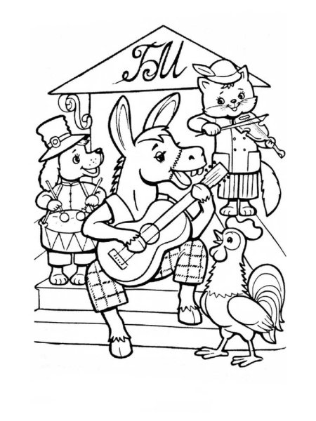 По сказке братьев Гримм «Бременские музыканты» раскраски