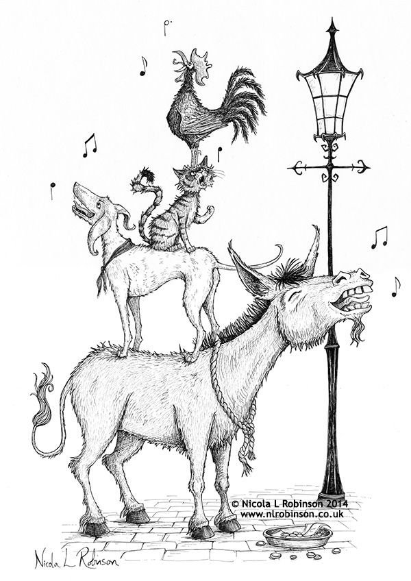 ![Бременские музыканты братья Гримм рисунок для детей]()