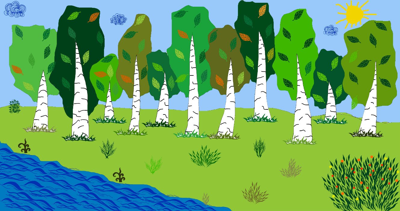 ![Березы мультяшные]()
