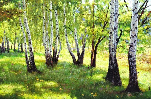 ![Березовая роща картины маслом]()