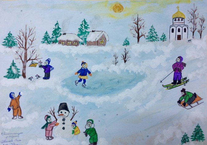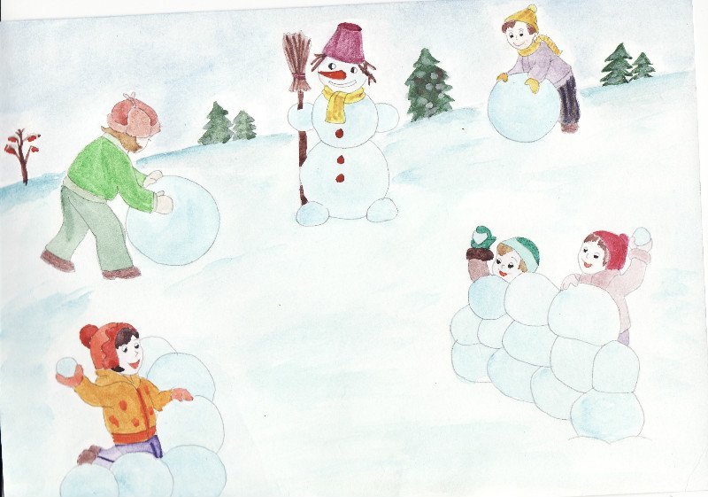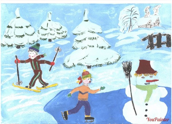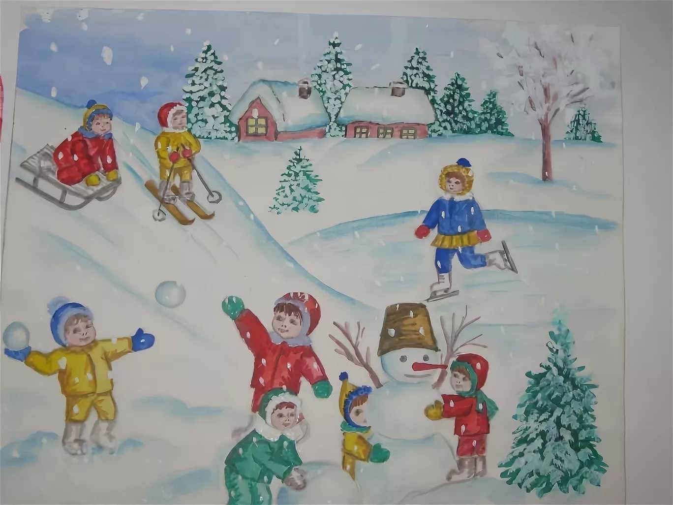 Рисунок "Зимние забавы" переносит нас в волшебную атмосферу зимнего карнавала. На фоне снежных холмов и ледяных деревьев расположены дети, которые с удовольствием катаются на санках и лыжах. Веселые крики и смех наполняют воздух, а яркие шапочки и варежки добавляют картины ярких красок. Этот рисунок передает радость и веселье, характерные для зимних игр и развлечений. Он приглашает нас окунуться в мир снежных приключений и насладиться этими незабываемыми зимними забавами.