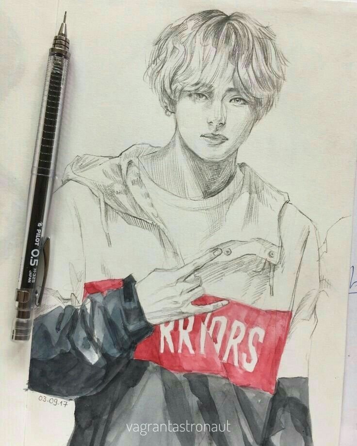 ![BTS карандашом Тэхен]()