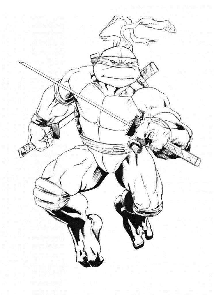 ![Раскраска Черепашки ниндзя Рафаэль Микеланджело]()