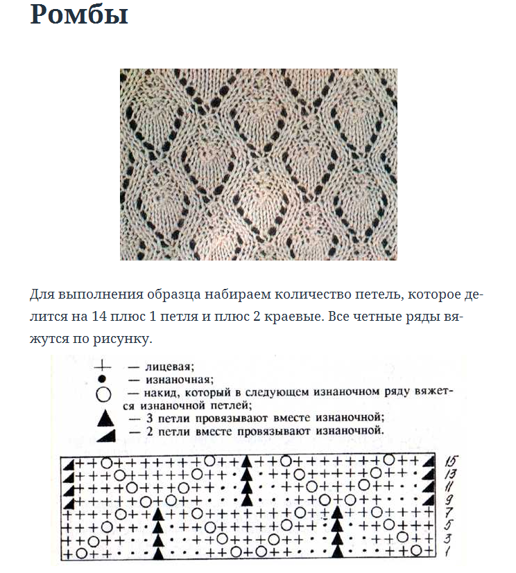 Схемы вязания ромбов спицами для начинающих с описанием