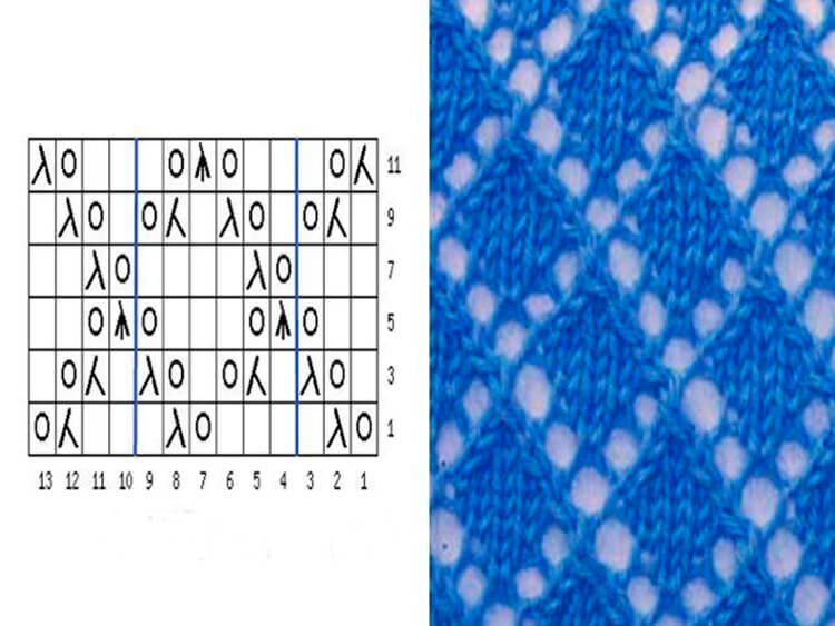 Ажурные узоры ромбики спицами со схемами