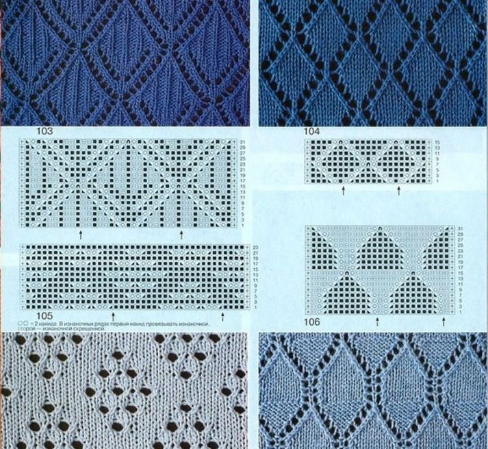![Ажурные узоры ромбики спицами со схемами]()