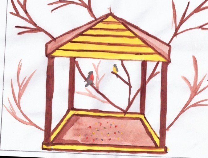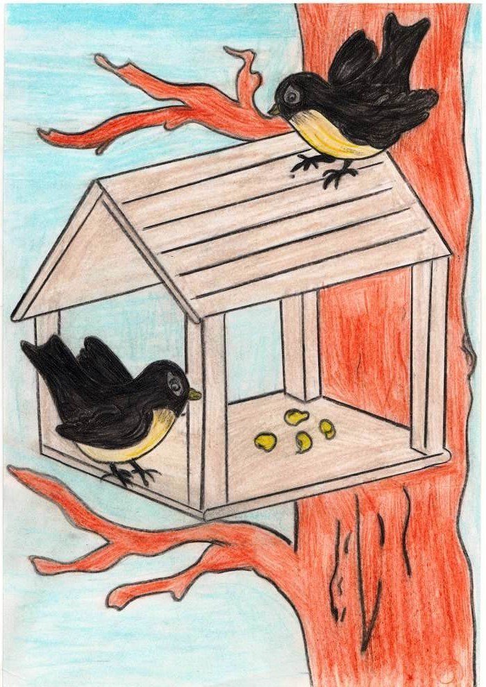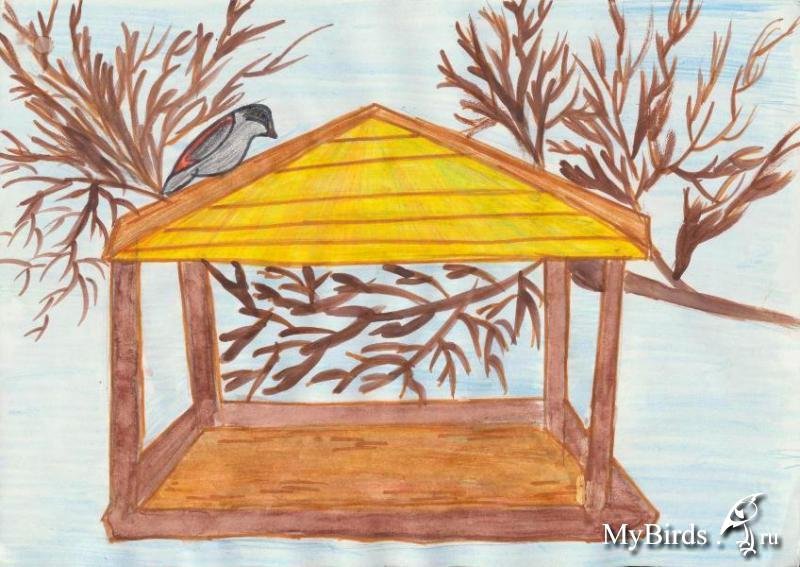 Кормушка для птиц рисунок для детей
