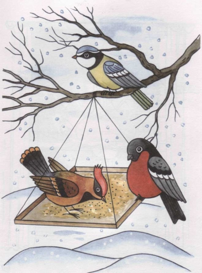 Рисование зимующие птицы