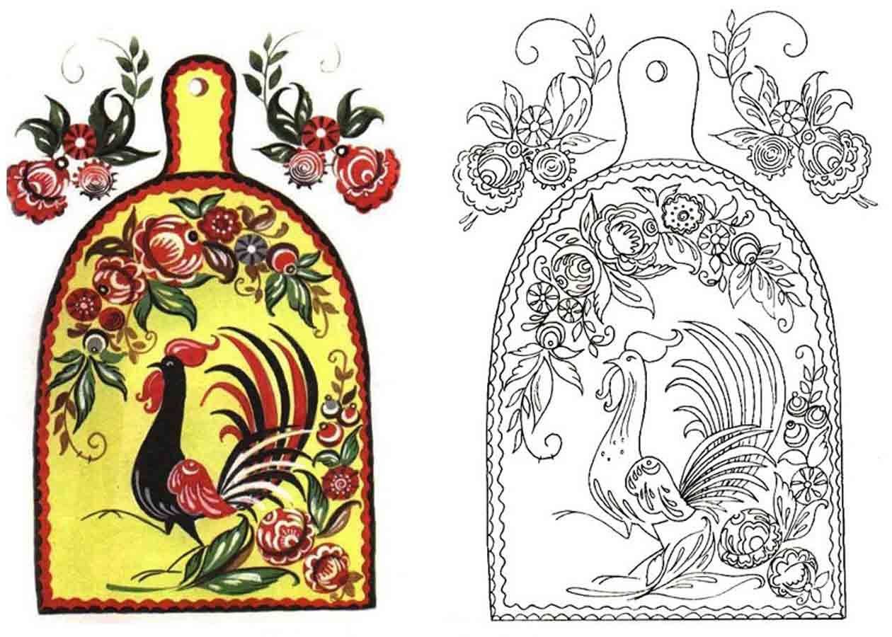 ![Рис. "Разделочная доска" Городецкая роспись]()