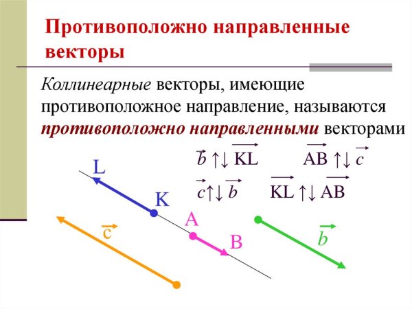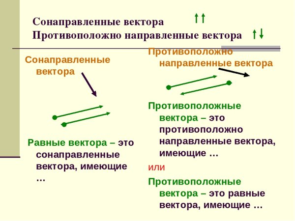 Сонаправленные векторы и противоположно направленные векторы