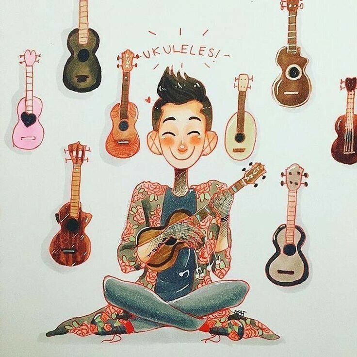 ![Человек с укулеле арт]()
