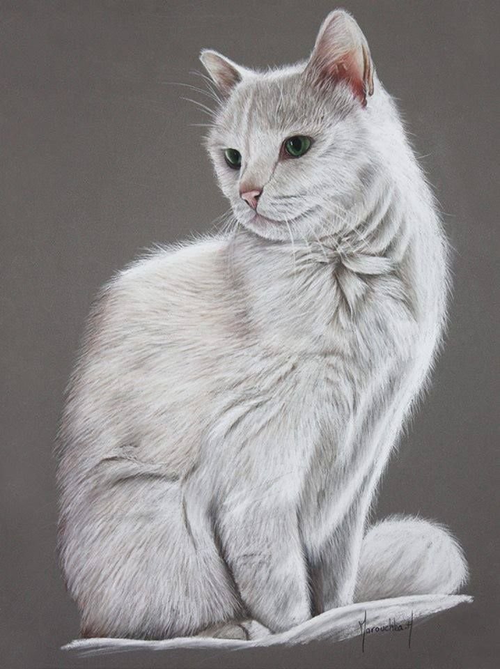 ![Белая кошка пастелью]()