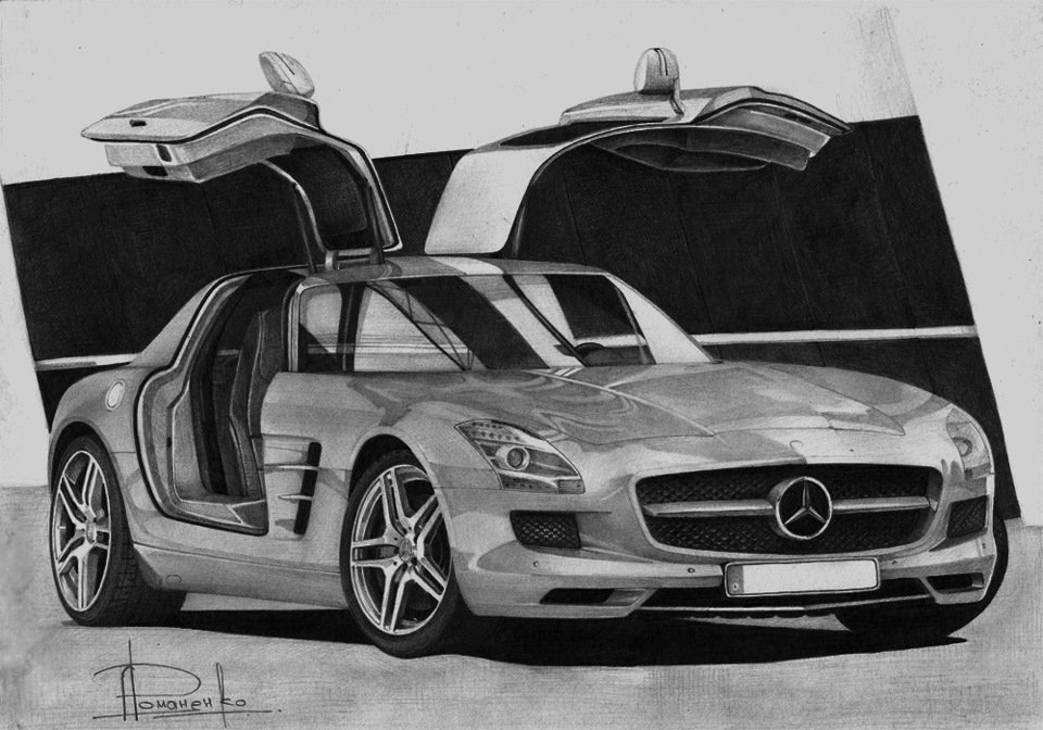 ![Мерседес СЛС АМГ рисунок]()